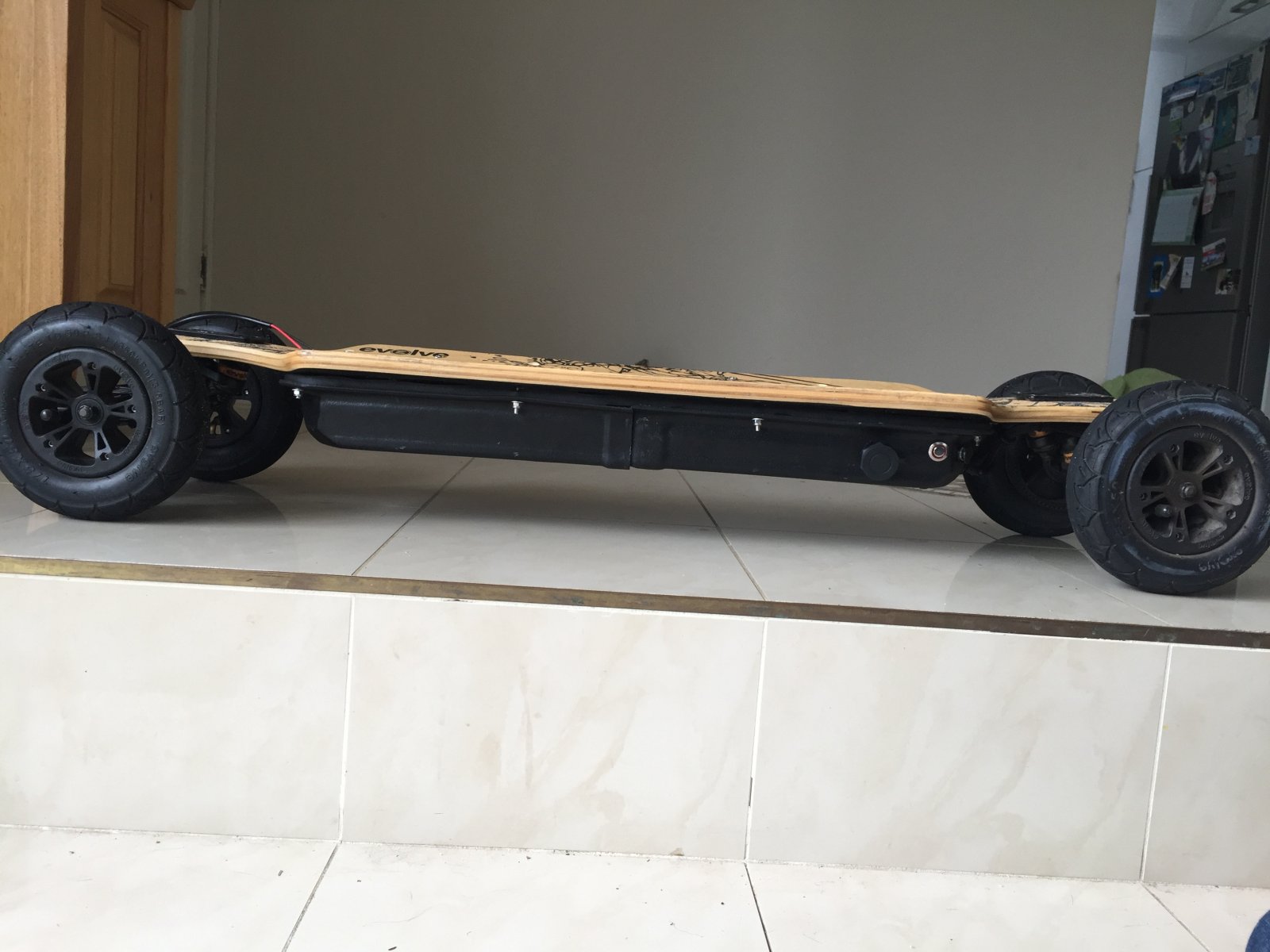 This is what a 50mm deep enclosure looks like on my bamboo deck-approx 70mm ground clearance on AT wheel. {} View attachment 2653 {} If you want 10S 6P only options are either go for longer board single stack or double stack with deeper enclosure! Cheers