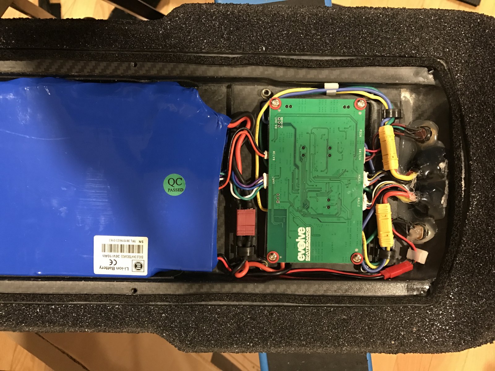 Alex julian46 No glue or silicone under the tape but they have put silicone on the connectors to the circuit board to stop them coming loose evolveboardno tape.jpg evolveboardsiliconeconnecters.jpg